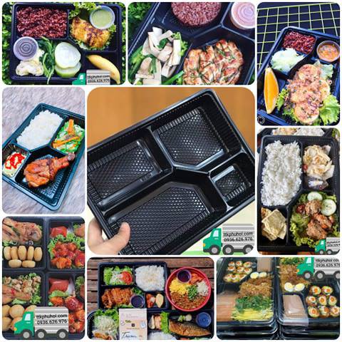100 Hộp nhựa đựng cơm 4 ngăn ht25 ( Nắp dày chắc chắn hơn nơi khác)